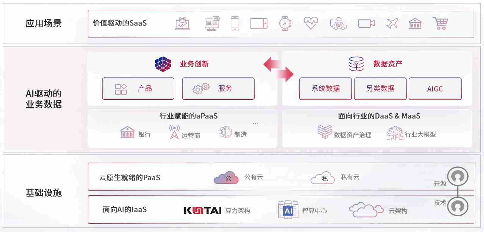 数字时代,,,围绕企业数字化转型的关键要素,,大资本210cc数码开创性的提出数云融合战略和技术体系框架,,,着力在云原生、、、数字原生、、、、AI原生和信创产业上架构产品和服务能力,,,为处在不同数字化转型阶段的快消零售、、汽车、、、金融、、、医疗、、政企、、、、教育、、、、运营商等行业客户提供泛在的敏捷IT能力和融合的数据驱动能力,,,,构建跨界融合创新的数字业务场景和新业务模式,,,助力企业级客户建立面向未来的核心能力和竞争优势,,,全面推动社会的数字化、、、智能化转型升级。。。